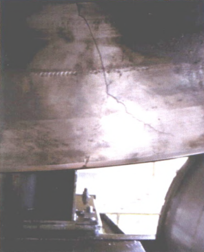 轮带属于大型铸造工件,难免会产生气孔夹渣、夹砂、裂纹、偏析等缺陷。工况对轮带运行的影响轮带垫铁、挡块开焊,活动频繁,从而使轮带在运行过程中轴向和径向的活动范围局部变大,产生周期性的应力峰值,承受交变载荷作用。